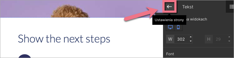 Podczas edycji możesz wrócić do Ustawień strony, klikając strzałkę: