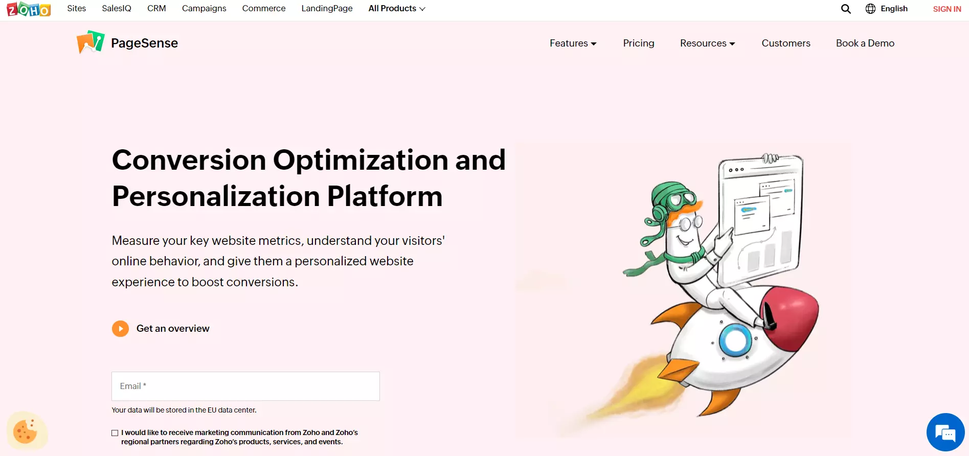 Another Google Optimize alternative, Zoho PageSense is Zoho’s dedicated conversion optimization and personalization platform. It allows you to edit and test web pages across multiple viewports (tablets, phones, and desktops).