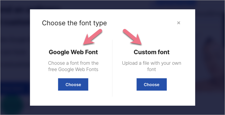 3. A new tab will open. Choose the font type: Google Web Font or Custom font.