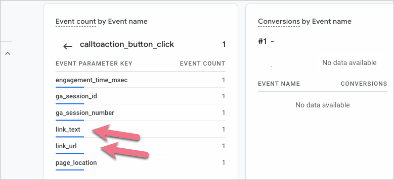16. In Reports, you can also check other parameters of the button click event. Click the name of the event, then the name of the parameter to see the details.