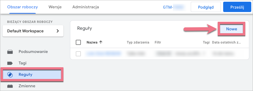Skonfiguruj tag oraz regułę w GTM i prześlij je do GA4
