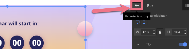 Podczas edycji do Ustawień strony wrócisz, klikając na strzałkę: