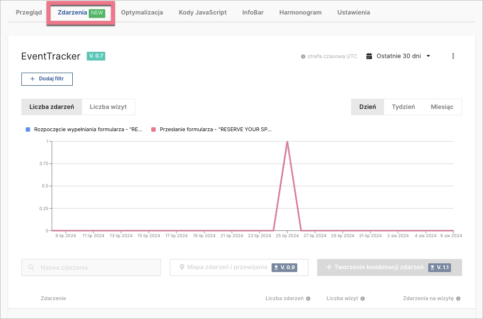 Po włączeniu funkcji EventTracker możesz wskazać zdarzenie jako konwersję, co da Ci dostęp do zaawansowanych statystyk. Możesz także korzystać z dodatkowych systemów statystycznych, np. Google Analytics.