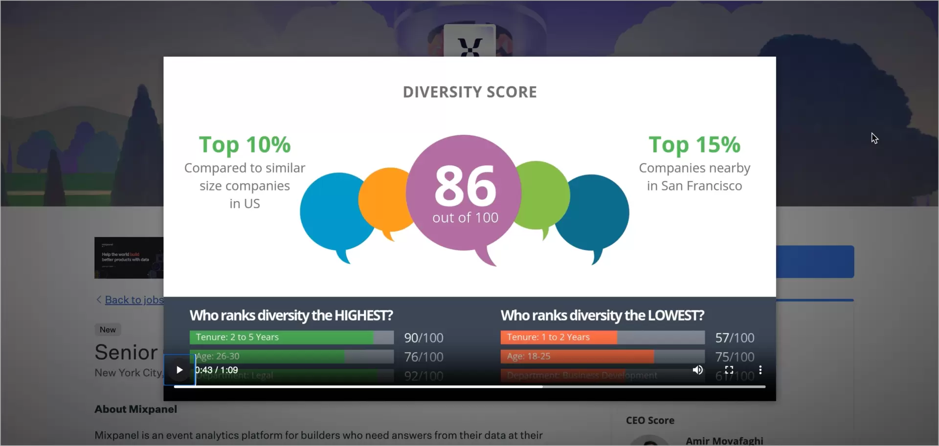 Elementy wizualne, takie jak zdjęcia, filmy czy infografiki, mogą sprawić, że landing page rekrutacyjny będzie bardziej atrakcyjny i przykuwający uwagę. Elementy graficzne powinny odzwierciedlać kulturę firmy i codzienne środowisko pracy. Jednym z przykładów do naśladowania jest film instruktażowy Mixpanel: