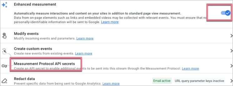 3. W tej samej zakładce przewiń w dół, aktywuj opcję Pomiar zaawansowany i wybierz Tajne klucze API.