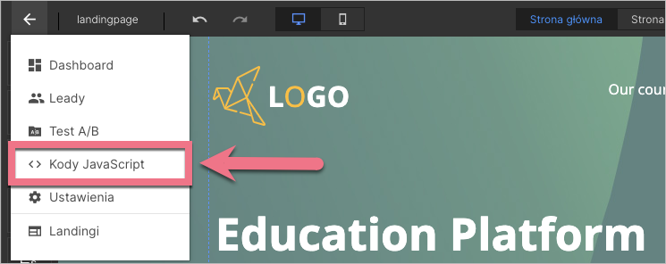 1. Zaloguj się na swoje konto w Landingi i przejdź do edytora landing page’a.