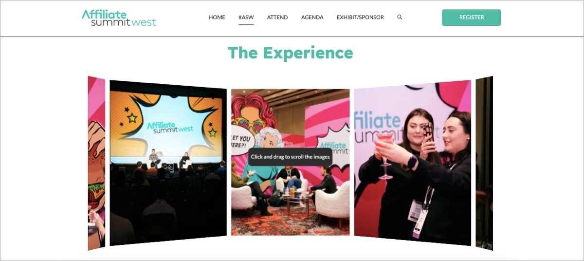 One of the best event landing page examples is the Affiliate Summit West, which is prime in high-converting pages. Their landing page was designed to promote one of the biggest affiliate marketing events in the world and attract a wide range of participants, including affiliates, advertisers, e-commerce sellers, networks, and tech suppliers.