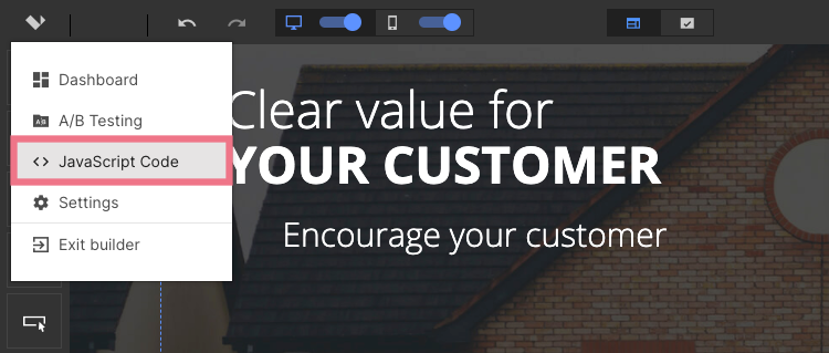 You can also access the JavaScript Code section directly from the editor of your landing page.