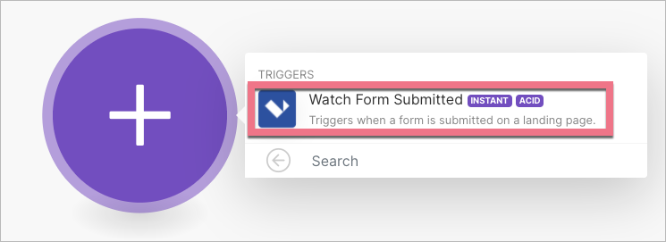 4. Potwierdź dodanie platformy Landingi do połączenia, wybierając trigger.