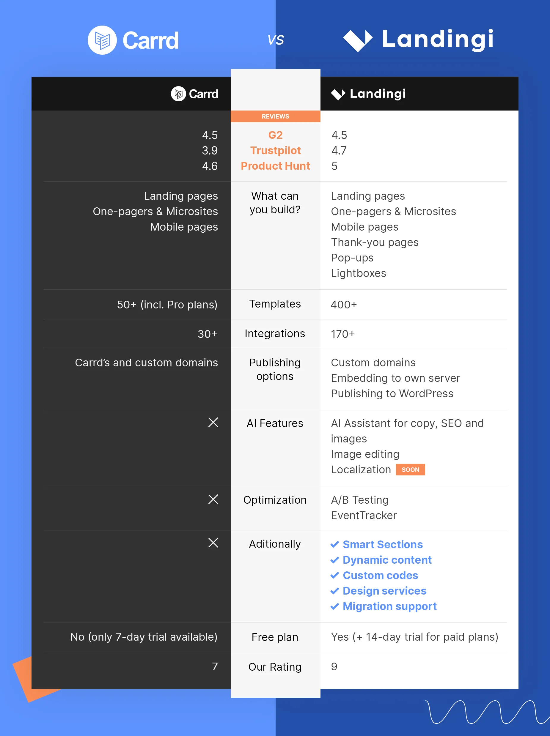 A estrela de Landingi supera as principais alternativas para a Carrd, bem como a própria Carrd.